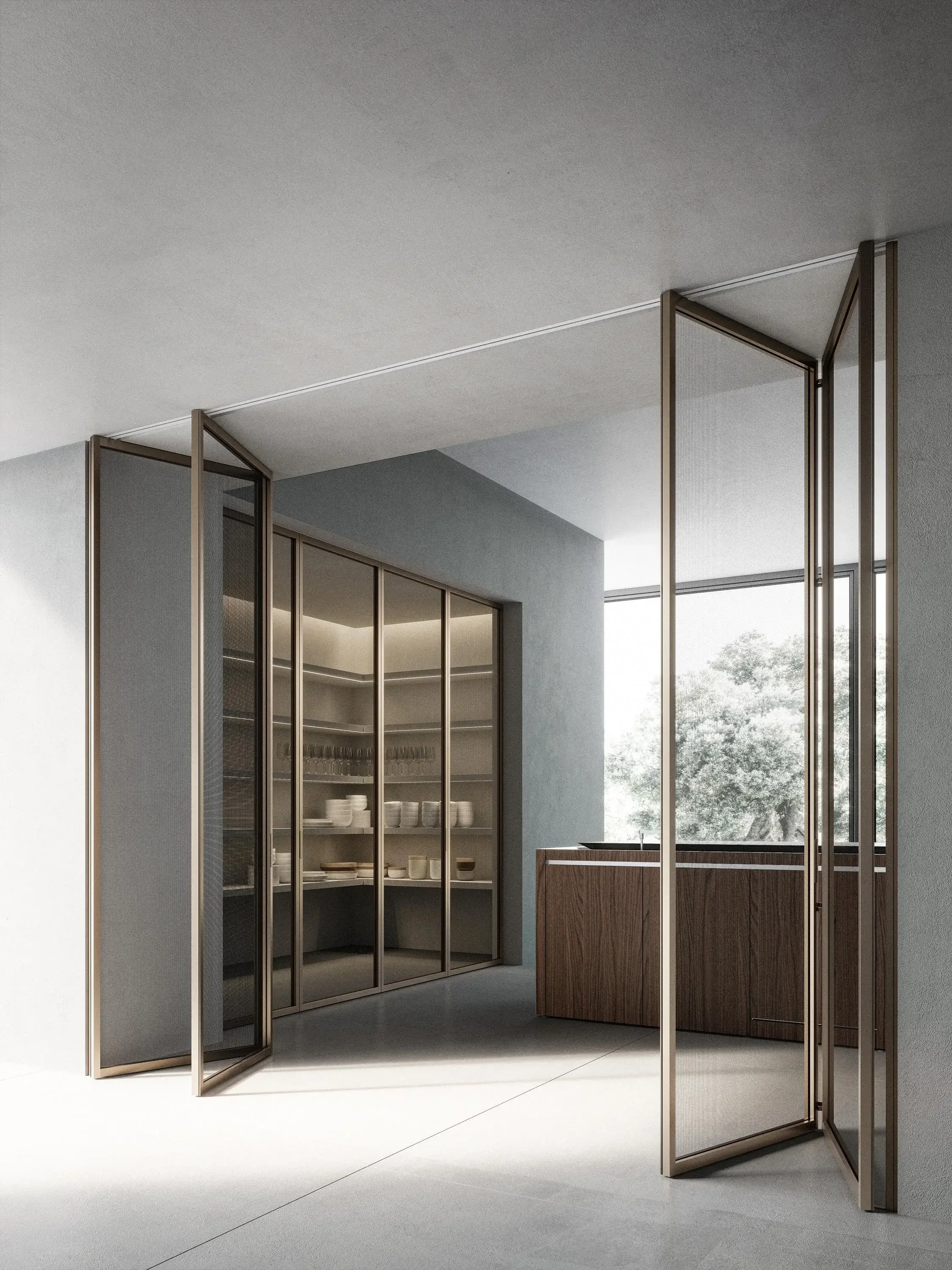 Leveraging advanced construction technology and a rich heritage, Mitica doors are offered in various opening configurations.