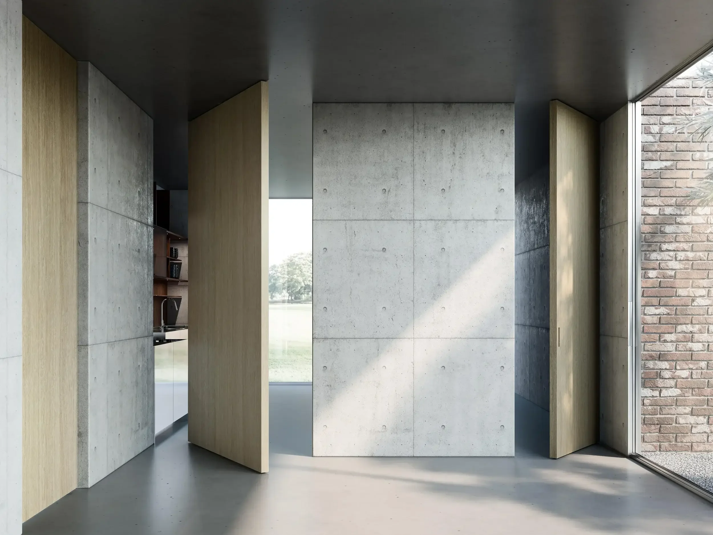 A pivot door is a large door system that rotates on a pivot hinge fixed to the top and bottom of the frame. Unlike regular hinged doors, it opens by turning on a central or side-set pivot. This gives it a bold and seamless look. OVERit offers a wide range of architectural pivot doors, made in Italy, that combine form and function. These doors are crafted to meet the needs of modern spaces. They are ideal for both homes and commercial buildings.